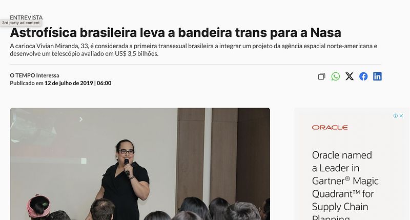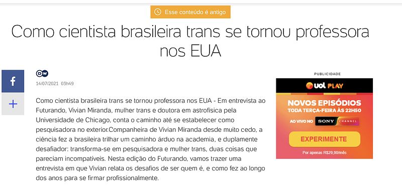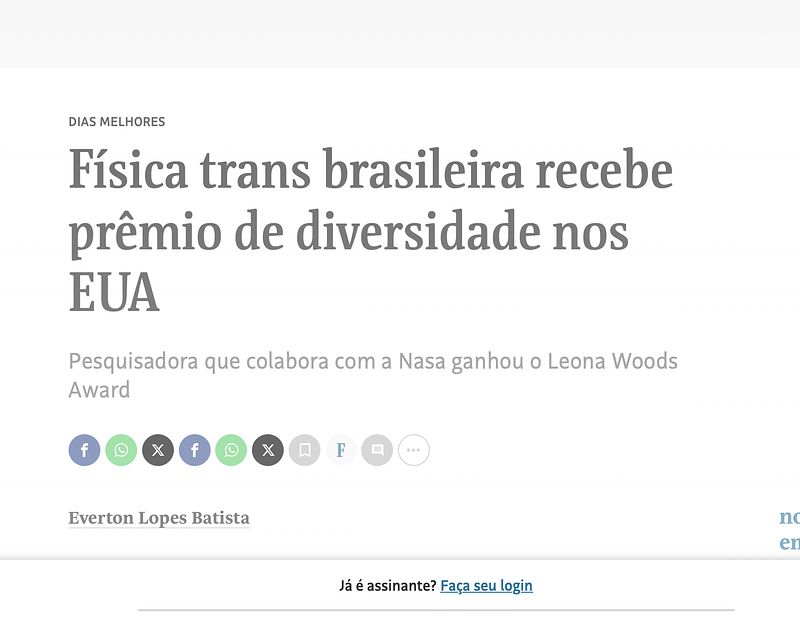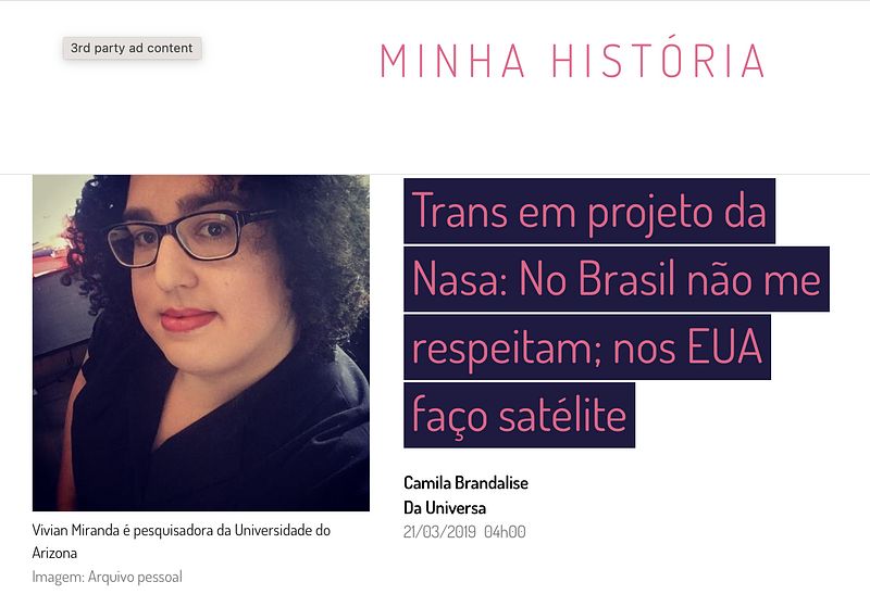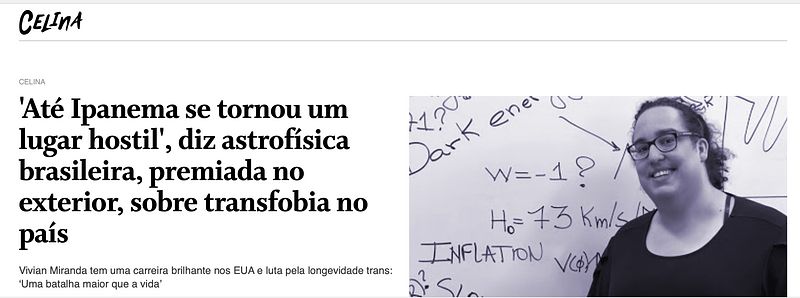 There have been many stories about me in Brazilian leading newspapers in the last few years. The truth is, most of the attention came from facts I hope will never happen again to future generations of scientists of transgender experience.